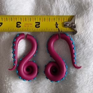 Serve sea witch wickedness with these lightweight dangling faux plug octopus tentacles in pink and blue! Metal posts are allergy free nickel free alloy.