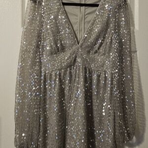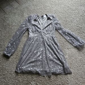 Lena Silver Sequin Long Sleeve Cocktail Dress