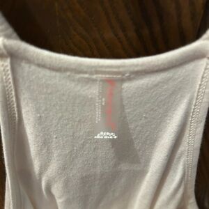 Features: Soft fabrication; lightweight design; scoop neckline, think shoulder straps; racerback detail; zippered back pocket; oversized patch pockets at tront