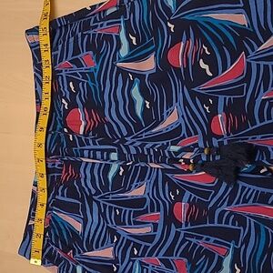 There are a vacation ready new without tags, 100% Cotton sailboat themed pants from Talbots! Womens small. Blue with vibrant ocean/boat themed pattern throughout. Comfy elastic waist with drawstring tassels and pockets. Small slit on each ankle. Pockets. Non-smoking household.