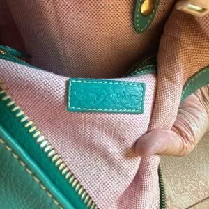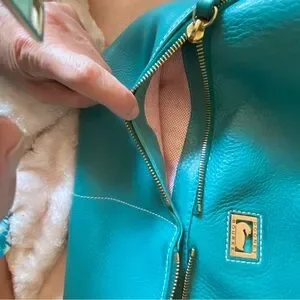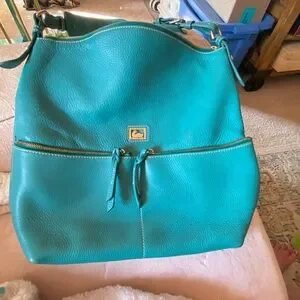 Beautiful turquoise Dooney and Burke large leather handbag with lots of storage