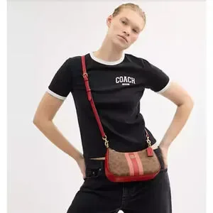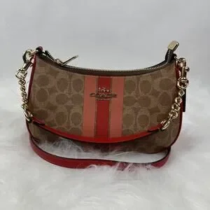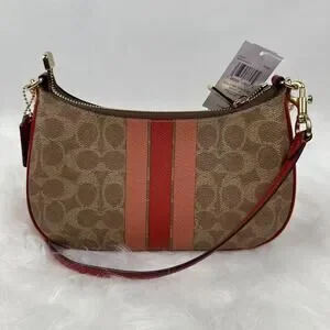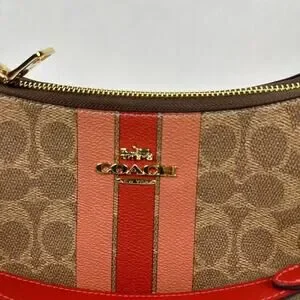 Coach Teri Shoulder Bag In Signature Canvas With Stripe In Tan Multi CAL81 NWT