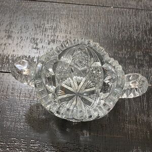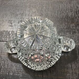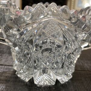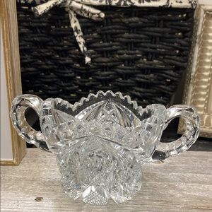 Add a touch of elegance to your home with this exquisite glass sugar bowl. Its clear design complements any decor, making it a versatile addition to your kitchen or dining room. Manufactured in Bellaire, Ohio. Known as “Star and Cane” or “Hobstar & Arches” pattern. It was designed to imitate cut glass. Sawtooth rim. You can see the Nucut mark in the bottom of the bowl. Imperial glass stopped using this mark in 1932 making this piece either vintage or antique. I used this piece to hold toothpicks and picks on charcuterie trays and sugar & creamer packets at my coffee bar. Would also be a very pretty way to display tea bags! Piece is in wonderful condition with no chips or cracks noted. Bundle this lovely piece with another listing/s to create a bundle and receive a further discount offer. In bundling you only pay a standard shipping fee once, up to 5 lbs.