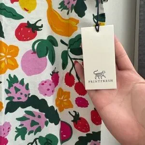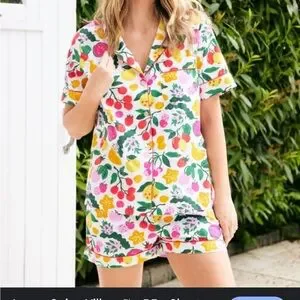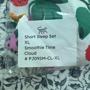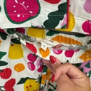 Organic cotton sleep set by Printfresh. Features colorful fruit design. Soft and comfortable. Brand new in original packaging with tags. I personally think this runs small. Knowing this material doesn’t have much stretch, the bottoms were too tight on me. I’m usually an XL in bottoms across the board and these were unfortunately too snug.