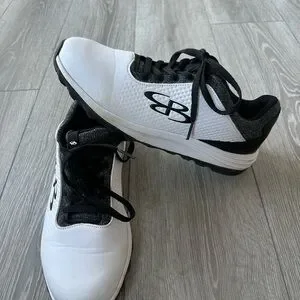 The Mens Boombah Vortx AWR White/Black/Gray turf shoes in size 7.5 are designed specifically for baseball and softball players. Made by the brand Boombah in the United States, these shoes feature a white color scheme with a medium width for comfortable wear. Perfect for team sports, these shoes provide stability and support on turf surfaces, making them ideal for athletes looking to enhance their performance on the field. Only used once by my son and he grew out of them. They are in excellent condition.