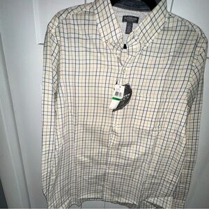 Van Heusen Cream, Yellow, and Black Casual Button Down Shirt NWT - Never Tuck