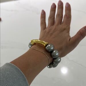 Elegant Gray Pearl Beaded Bracelet w 14k over brass piece