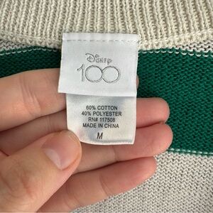 This Disney 100 cardigan sweater features a charming V-neck design in a delightful blend of colorful stripes alternating with white stripes. Crafted from a cozy knit material, it offers a playful and casual style perfect for any occasion. The sweater is adorned with a subtle embellishment on the chest, adding a touch of whimsy to your wardrobe.
