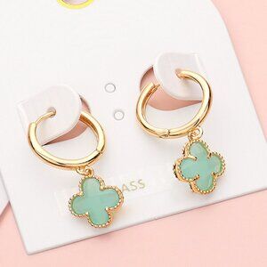 Quatrefoil Stone Cluster Dangle Huggie Earrings