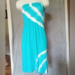 Beautiful turquoise and white abstract design. Soft and stretchy materials. May be worn as a tube top dress or long skirt, providing multiple looks! New with tags.