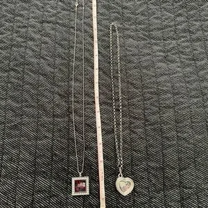 Elegant silver necklace set featuring a heart and square pendant. Perfect for adding a touch of sophistication to any outfit.