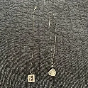 Silver Heart and Square Lockets with Charms Inside Necklace Set
