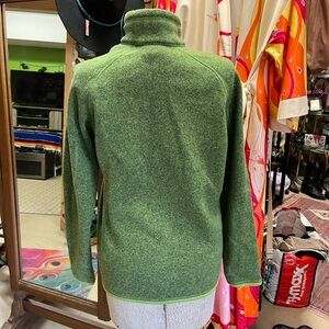 Embrace the cozy warmth of the Patagonia Green Fleece Zip Up Sweater, designed with a plush texture for ultimate comfort. This stylish zip-up features a soft green hue, perfect for adding a touch of color to your wardrobe. With its signature Patagonia design, this sweater is both functional and fashionable, ideal for layering on cooler days.