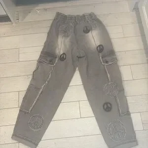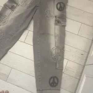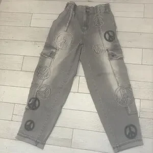 Oli & Hali Gray roomy Jeans with Distinctive Peace Designs