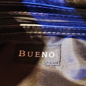 good condition! only flaw is rip on inside by pocket. It has a great kisslock closer - love that !! This Bueno shoulder bag combines a bold animal print with a sophisticated black and brown color palette. Its gathered design adds texture and visual interest, making it a standout accessory for any occasion. The bag's sleek silhouette and durable handles ensure both style and functionality.