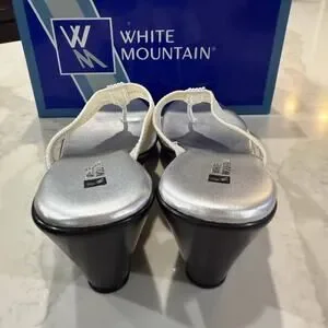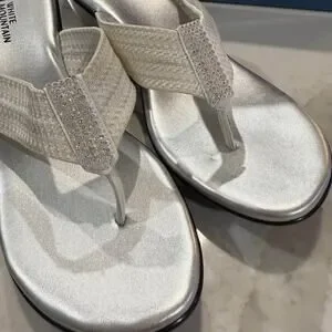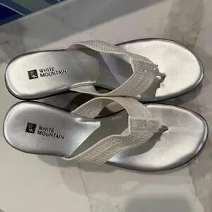 White Mountain Wedge Thong Platform Sandals Women's 8M White Rhinestone Accent