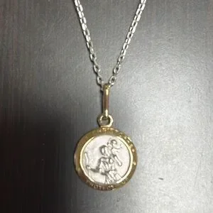 This Alex and Ani elegant sterling silver St. Christopher pendant 18” necklace adds a touch of sophistication to any outfit. Perfect for any occasion. The pendant is silver and gold and reads Saint Christopher- Protect Us. The lighting was terrible at the time of photos. I tried every angle to get the best shots.