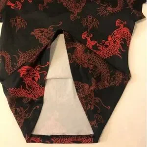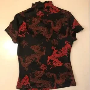 Chinese Style Open Front High Neck Shirt, size S, may also fit some XS. Stretchy material. Pre-worn, no major flaws, stains, or rips. Front has an open section, shows a bit, but not too much. Very cute!