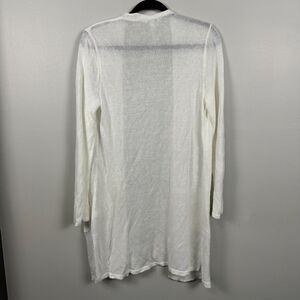 J. Jill Womens Medium Linen Blend White Open Front Knit Cardigan Pockets Long