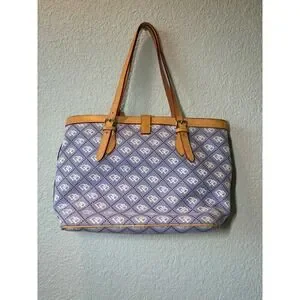 Dooney & Bourke DB Monogram Tote Bag Purse Lavender and White Leather Trim Y2K