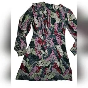 New Beautiful Multi Colored Dress, Long Sleeve Round Neck with 1 Button & Loop at Back Neck Line, Button Cuffs, 100% Polyester, Armpit to Armpit 19in Sleeve Length 24in Waist 28in Length 30in