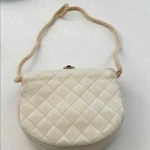 The CHANEL Cream Quilted Clutch is a luxurious accessory that exudes elegance and sophistication. Crafted from creamy quilted silk/satin, it features a distinctive diamond pattern and gold-tone hardware, making it a timeless piece. The structured design and flap closure add to its chic appeal, perfect for elevating any ensemble.