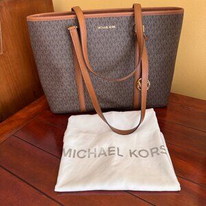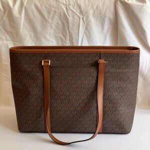 Michael Kors Sady Large Logo Canvas Top-Zip Laptop Travel Tote Brown