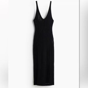 H&M LIMITED EDITION CROCHET-LOOK DRESS Size L NWOT Black Knit Midi Length