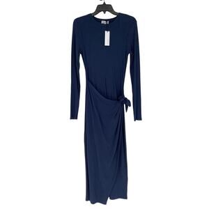 Michael Stars Women's Small Nocturnal Yessenia Faux Wrap Midi Dress Ribbed J2-26