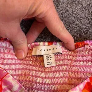 Topshop Rose Animal Print Satin Long Sleeve Crop Top Pink Red Size 8 #187