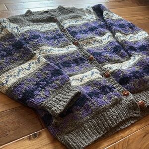 Vtg Nordic fair isle hand knit wool cardigan sweater. One size. Excellent condition