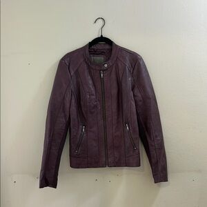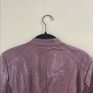 Elevate your style with this exquisite purple faux leather jacket from Maurices, featuring a sleek fitted silhouette and a luxurious leather texture. The ribbed cuffs and standing collar add a modern touch to this timeless piece, making it a versatile addition to any wardrobe.