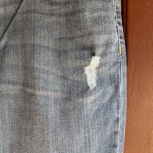 Mildly distressed EVRI Jean capris. They are NWT. The bottom is rolled up. No known issues other than distressed areas shown in pictures. Please ask any and all questions prior to purchase. Thanks for looking!