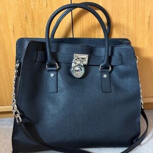 Michael Kors Black Hamilton Satchel with Silver Accents