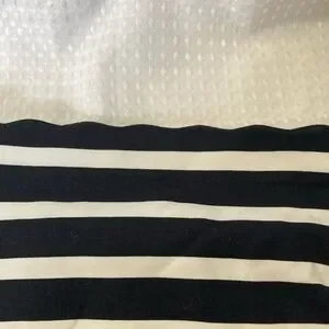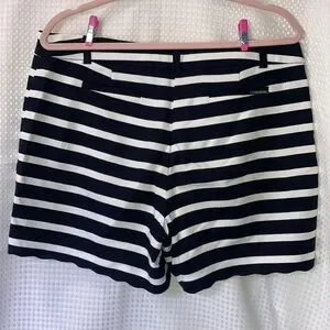 Stylish navy and white striped shorts. Perfect for casual outings. Comfortable fit. Anne Klein size 12 Striped Flat Front Shorts