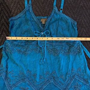 Elegant teal midi dress with intricate embroidery. Perfect for a causal summer lunch or dress it up for a summer evening. In a perfect pre-loved condition. Smoke free and pet free home.