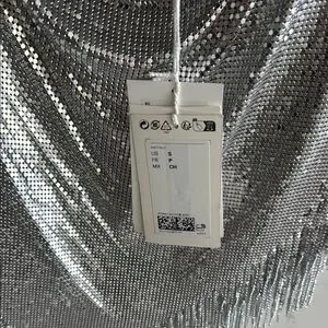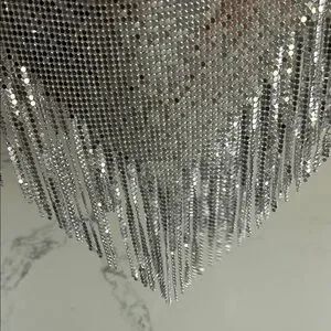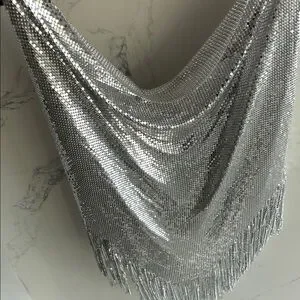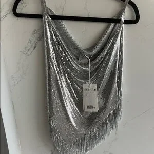 Shimmer in style with this stunning silver chainmail top. Perfect for a night out, this top adds a touch of glamour to any outfit.