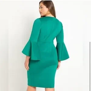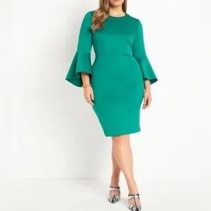 Eloquii Ultramarine Green Flare Sleeve Scuba Dress size 18 Plus Size Knee Length
