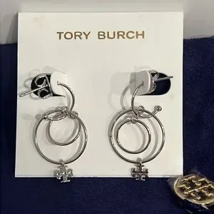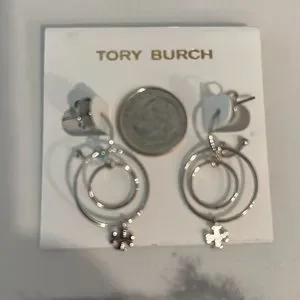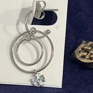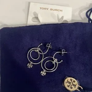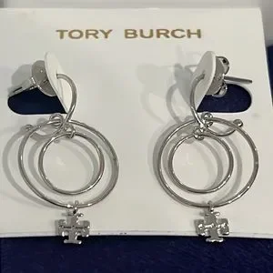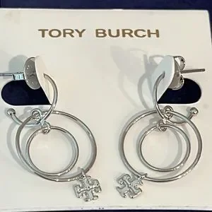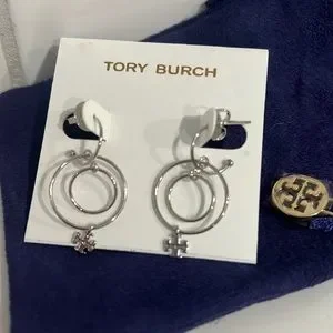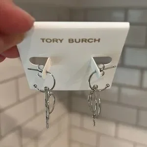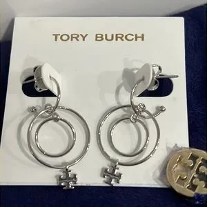 Logo Charm Wire Drop Earrings in Tory Silver Brand New with dust bag include..Brand New..