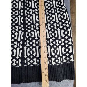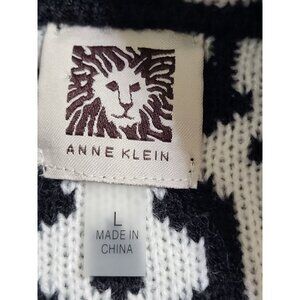 Anne Klein LG Black White Print Cardigan Sweater Jacket Gold Lion Mature Classy