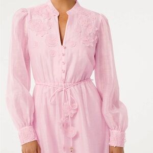Charming long sleeve dress by Ever New. Features a soft pink hue. Delicate floral accents. Perfect for elegant occasions.