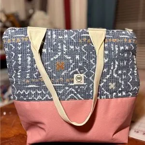 This unique blue and pink tote bag by Marcie Made combines style and practicality effortlessly. Made from sturdy upholstery-grade canvas with a chic, eye-catching pattern, it’s perfect for daily errands or a day out. The reinforced vinyl base adds extra durability, while soft cotton webbing straps keep it comfy on your shoulder all day long. A secure zipper closure and handy inner pocket keep your essentials organized and within reach. Handmade with care, this tote isn’t just a bag — it’s a fun, stylish upgrade for your everyday look!