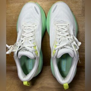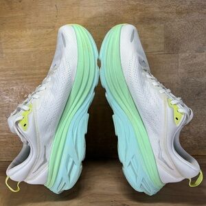 Hoka One One Bondi 8 REFLECTIVE Womens Sz 10.5 Running Shoes Sneakers White Blue
