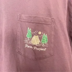 Parks Project short sleeve tee with pocket graphic on front and larger National Parks graphic on the pack. Color is a purplish color.