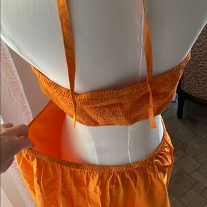 Topshop Cotton Poplar Maxi Orange Cutout Vacation Dress NWOT Medium