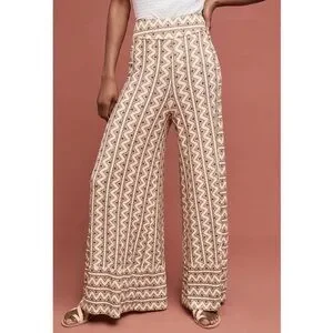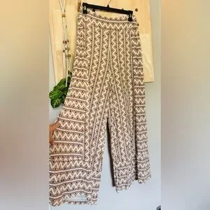 FARM RIO Anthropologie Cream and Brown Wide-Leg Pants Size Medium Petite
