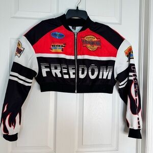 Letter Print Crop Jacket - Spring Fall Fashion Size XS