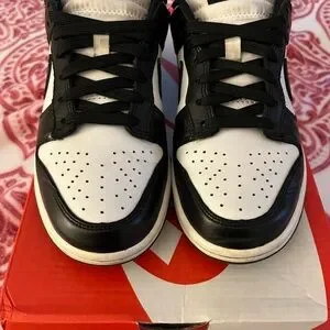 Gently used and worn Nike Dunk Low sneaker in black and white aka Pandas. Ideal for everyday style. No odor or bad creasing. women size 6