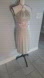 This elegant halter dress features a delicate lace overlay in a sophisticated gold and cream color. Perfect for special occasions, it offers a flattering fit with a stylish halter neckline.