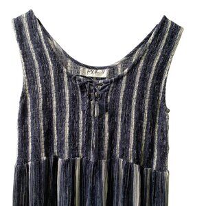 FX Fashions Jumpsuit Women's Size Large Navy Stripe Wide Leg Tie Sleeveless